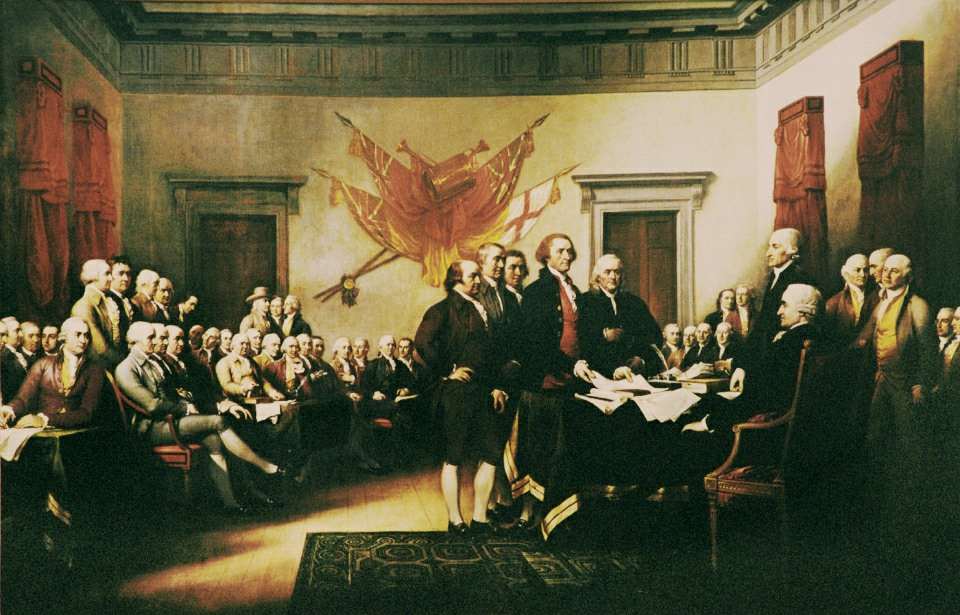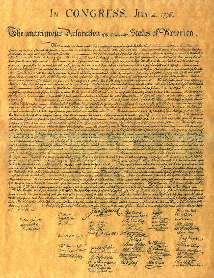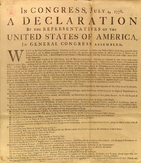 This is the only surviving fragment of the broadside of the Declaration of Independence printed by John Dunlap and sent on July 6, 1776, to George Washington by John Hancock, President of the Continental Congress in Philadelphia. General Washington had this Declaration read to his assembled troops on July 9 in New York, where they awaited the combined British fleet and army. Later that night, American troops destroyed a bronze-lead statue of Great Britain's King George III that stood at the foot of Broadway on the Bowling Green. The statue was later molded into bullets for the American Army